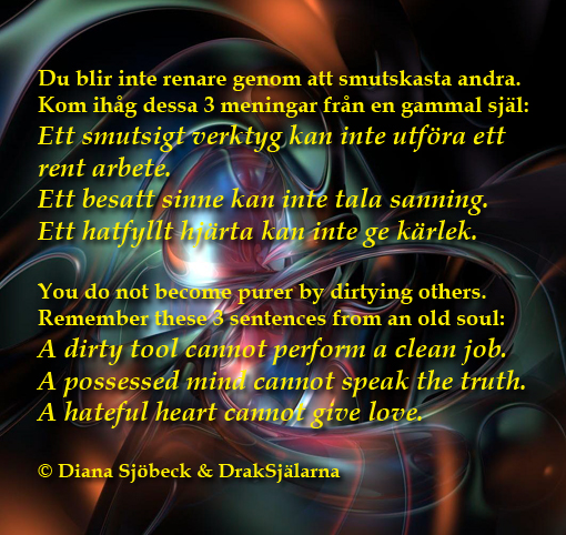 Det finns individer där ute som flitigt utför energimässiga attacker för att skada andra människor eller påverka andra människors liv negativt på olika sätt. Dessa människor som utför detta slags arbete är styrda eller besatta av mörka negativa energiformer. De har med all säkerhet framgång i sina liv men det kommer inte att vara för evigt. Även om de tror att de är immuna mot konsekvenserna av deras handlingar, så är de det inte. Detta är en universell sanning, en karmas lag och INGEN undkommer detta. Den klassiska förövaren, som inte läkt sina egna trauman, kommer alltid att vilja hålla andra ansvariga för deras egna tillkortakommanden. Det är världens enklaste utväg att alltid skylla ifrån sig för att slippa ta ansvar för sina egna val i livet. Plötsligt kommer de inte ihåg varför de kommit tillbaka till jordelivet och till den specifika familjen de fötts in i. De smutskastar flitigt alla andra som arbetar med liknande tjänster. Smutskastning är en energimässig attack, det är en form av svart magi särskilt om den pågår under många år. Detta är vad dessa individer gör parallellt som de beskyller andra för det de själva gör. På ett mirakulöst sätt tror de att de blir renare genom att förtala och förlöjliga andra hårt arbetande människor.