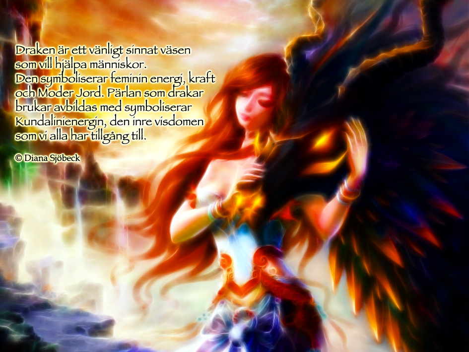 The dragon is a friendly being who wants to help people. It symbolizes feminine energy, power and Mother Earth. The pearl that dragons usually are depicted with symbolizes the Kundalini energy, the inner wisdom that we all have access to.