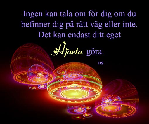En del är fast i sin övertygelse om att vi inte klarar av förändringar på egen hand, vi måste ha någon eller något som skall frälsa oss från ondo och hjälpa oss till upplysning. Detta är en separerande energi, detta är en energi som förminskar vårt värde, vår storhet och hela vår potential både som människor och själar. Du får tro på vad du vill, det är din rättighet, liksom det är min rättighet att uttrycka mina funderingar. Jag har i alla fall tröttnat på att upprepa mantran som inte längre känns rätt i hjärtat. Mantran som håller hoppet uppe men inga bestående förändringar infinner sig. Visst, jag kan skapa min egen verklighet med tankens kraft, men i så fall får jag flytta till en planet där ALLA tänker likasinnat för att det ska fungera. Verkligheten, som jag ser den, delas inte av alla. Det är svårt att skapa en positiv förändring när den hela tiden motarbetas från olika håll. Vill vi skapa en fredlig värld utifrån hjärtats energi, måste ALLA vara med annars fungerar det inte. Vi kan inte känna hjärtats energi med sinnet eller genom EGOT.