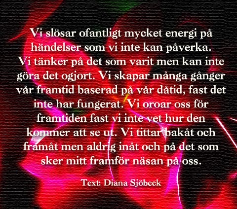 I grund och botten är jag en positiv och glad människa. Jag har alltid sett en mening med allt det som skett i mitt liv och tackat för alla erfarenheter som kommit i min väg. Jag kan bara säga att jag varit med om mycket, mycket mer än vad många kan föreställa sig, så brist på kunskap och erfarenheter har jag inte. Det är kanske därför jag nu befinner mig i en tid som handlar om omvärdering av verkligheten, vad jag lärt mig att tro om livet och dess syfte. Det är en del frågor som jag inte riktigt kan få svar på eller så är det kanske att jag inte har förstått svaren. Oavsett vilket, är jag övertygad om att fler tänker i samma banor som jag.