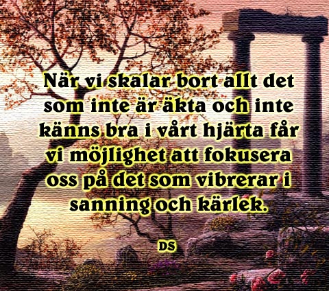 Men även tråkiga, tunga och mörka tillstånd har ett värde, trots allt. Alla dessa tillstånd lär mig någonting om mig själv och andra. Det lär mig att se andras rätta färger och lär mig hur jag väljer att förhålla mig mot dem. Jag vill kunna bemöta människor där de befinner sig i livet och inte genom att ignorera problemen eller påstå att de inte finns. Obalanser skapas av att någonting förträngs eller inte besvaras på rätt sätt. Vad detta någonting är, är upp till var och en att finna svaren på. Jag är övertygad om att hälften av våra ”problem” hade kunnat lösas genom kommunikation. Jag önskar att människor kunde sluta förvänta sig att någon ska leka tankeläsare och ta sitt personliga ansvar genom att faktiskt prata ut om något är oklart. Lider de däremot av avundsjuka så är ju klart problemet av annat slag och som bäst botas på det personliga planet. I mitt hjärta klappar kärlekens och förlåtelsens låga, oavsett vad andra väljer att göra i detta livet eller i något framtida liv. Jag vet en sak med all säkerhet och det är att Kärleken övervinner allt…