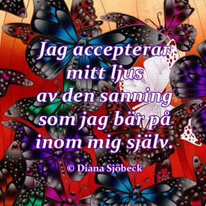 Andligt uppvaknande med Diana SjöbeckJag har lärt mig mycket av dem som inte varit kärleksfulla i sin energi gentemot mig. Att få uppleva andras speglingar av det negativa slaget har gjort mig starkare och ännu mer beslutsam i min personliga utveckling till fullkomlighet. Endast jag själv bestämmer hur jag vill förhålla mig till livets baksidor.