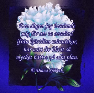 Det är befriande att ta avstånd ifrån människor som inte uppskattat mig och det jag givit av mitt hjärta. Jag vill inte längre slösa av min dyrbara tid och energi på individer som tror att min existens enbart går ut på att ge deras Ego bekräftelse. Ja, det gör ont när Egot blir sårat. Det gör lika ont att känna sig förbisedd och oviktig som t.ex. vid födelsedagar. Jag behöver inte just den dagen lyssna på andras sjukdomar, banaliteter eller gnäll om livet. Att fira mig genom att komma med en present och ändå inte vara känslomässigt eller intellektuellt närvarande är för mig värre än att vara ensam just den dagen. Jag behöver inte detta längre i mitt liv. Det handlar inte om att jag tycker illa om någon, det handlar om att jag inte accepterar att bli illa behandlad av någon. Att vara självisk (inte samma sak som att vara egoistisk) är sunt, läkande, förlösande och en lärdom i sig att sätta klara och tydliga gränser. Om jag har lärt mig att acceptera andras gränssättningar är det lika naturligt för mig att jag blir bemött med samma respekt tillbaka.